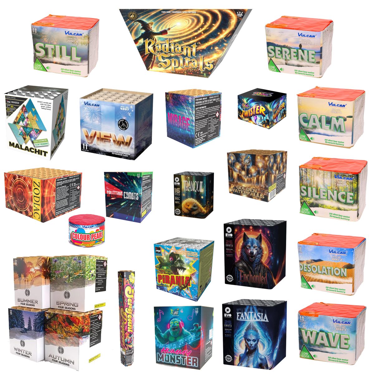 Bursting with quiet delights, this bargain bundle is perfect for displays where you want the colour and excitement of aerial barrages, but without loud bangs.