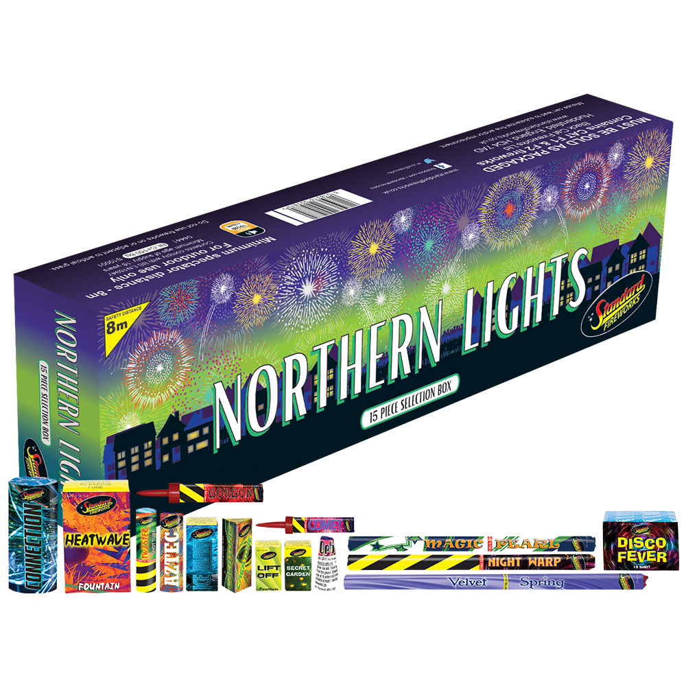 Standard Fireworks Northern Lights Selection Box – 15 Assorted Fireworks